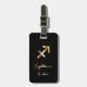 Etiqueta de bagagem elegante com sinal de sagitário dourado sobre fundo preto.