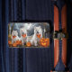Libere o espírito assustador com esta design sombria do Dia das Bruxas apresentando um bando de cachorros sob um céu escuro e iluminado, cercado por morcegos voadores e abóboras brilhantes. Perfeito para aqueles que amam um toque de diversão terrível com seus amigos peludos!