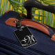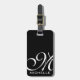 etiqueta de bagagem personalizada com correia de couro: monograma e nome de grandes scripts