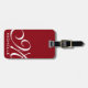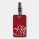 etiqueta de bagagem vermelha personalizada com correia de couro: monograma e nome de grandes scripts