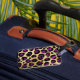 Etiqueta De Bagagem Série Leopardo roxa e Dourada Design 4