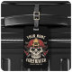 Design do corpo de bombeiros personalizado do bombeiro - Esqueleto com capacete vermelho e eixos duplos. Personalize com seu nome, número de estação/departamento e local.