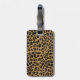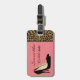Etiqueta de bagagem de moça Chic feita em cor-de-rosa-salmão, com gráficos de um padrão de pelo jaguar marrom e preto, com fita de marfim, e um par de saltos pretos a saltos altos, na frente. Personalize o texto preto para atender às suas necessidades. Uma etiqueta de bagagem de pé que é duro de perder.