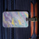 Quiet Reign is an abstract piece defined by its soothing, cool color palette and energetic brushwork. The painting features diagonal sweeps of soft lavender, tranquil aqua, and deep violet, punctuated by bold, shimmering metallic gold accents. The overall effect is one of serene motion, like a gentle rain shower illuminated by a hidden golden light. This artwork adds a touch of modern, peaceful sophistication to any space or product.