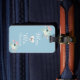 O Sr. e a Sra. Honeymoon pegam a bagagem para noiva e noiva depois do casamento em azul-chic e floral cor-de-rosa