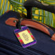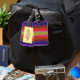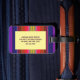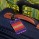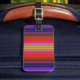 Faça sua bagagem se destacar em um carrossel do aeroporto com designs únicos! Esta etiqueta de bagagem brilhante é decorada com um padrão listrado em laranja, roxo, amarelo, vermelho, verde, violeta e preto que se assemelha a um belo padrão do arco-íris de abstrato. Personalize o lado inverso com suas informações pessoais.