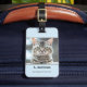 Etiqueta de bagagem com a sua própria foto de gato (opcional) em azul claro com design de prata. No verso estão as impressões opcionais da pata. A diversão vem com seus textos personalizados, é claro:-)