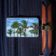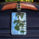 Com seus nome e número na parte traseira, estas palmas tropicais ajudá-lo-ão a encontrar sua bagagem, ou recupere é se perdido. As palmeiras acariciadas por uma ilha breeze nos Bahamas.