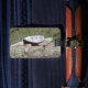 Uma fotografia de uma grande tartaruga a bater num tronco enfeita esta etiqueta de bagagem personalizável!