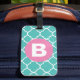 Etiqueta De Bagagem Teal Quatrefoil Pattern Custom Pink Monogram