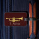 Este Tag do loggage caracteriza um tema da música - uma trombeta dourada ilustrada que mostra detalhes do instrumento contra um fundo cuja a cor você possa mudar, e o texto que é customizável.