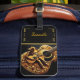 Dê vida à elegância ocidental com esta Etiqueta de Bagagem mostrando uma guitarra branca e dourada com intrincada trabalho de arte de vaqueiro — uma escolha perfeita para os entusiastas da música e do vaqueiro.