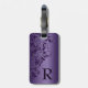 Textura metálica púrpura elegante e rendas florais roxas mais escuras e monograma personalizável.