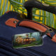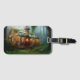 Uma oficina de estilo Steampunk em uma margem de rio musgosa - uma etiqueta de bagagem de arte digital criada com software de IA