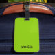 etiqueta de bagagem de na moda em verde brilhante e brilhante. Personalizar com nome ou monograma