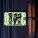 Esta etiqueta de bagagem é verde-clara com três músicos de gatos pretos a tocar instrumentos musicais incluindo um saxofone, violino e guitarra com notas de música preta nas costas. Personalize seu nome e endereço com o modelo.
