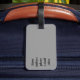 Desenho de arte de caleidoscópio cinza que parece uma cortina. etiqueta de bagagem/saco.