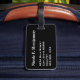Etiqueta de bagagem com um conselho de circuito eletrônico azul num fundo preto, nome e endereço em fundo preto. Personalize com seu nome e endereço, usando os modelos fáceis. A cor da fonte, o estilo da fonte, o tamanho da fonte e a cor preta do plano de fundo são personalizáveis.