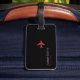 Mapa branco do mundo com dois aviões em uma etiqueta de bagagem preta, para personalizar com seu nome e número de telefone ou endereço... Uma maneira inteligente de fazer sua bagagem se destacar em uma multidão... porque todos parecem viagem com uma mala preta