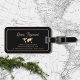 A simplicidade de uma elegante e moderna etiqueta preta com um pequeno mapa do mundo na frente, e um avião na parte de trás... com campos para nome e informações adicionais (endereço, telefone e email)...
