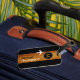 Madeira simples e na moda/design preto para identificar seus pertences. Uma faixa com um pequeno avião... para adicionar o nome do viajante e inicial. Uma etiqueta de bagagem com um nome é importante por várias razões práticas ao viajar. Em primeiro lugar, serve como uma forma rápida e fácil de identificar as suas bagagens no mar de bolsas semelhantes em aeroportos, estações de ônibus ou outros centros de transporte. Isto pode poupar-lhe tempo e reduzir o risco de, acidentalmente, tomar o saco de outra pessoa ou de ter outra pessoa a tomar o seu. Em segundo lugar, uma etiqueta de bagagem com o seu nome fornece uma ligação de informação de contato crucial para o caso de a sua mala se perder. No caso infeliz de a sua bagagem estar deslocada durante a viagem, ter o seu nome e os seus dados de contato na etiqueta torna muito mais fácil para a companhia aérea ou o pessoal do transporte reuni-lo com os seus pertences. Esta simples medida aumenta as hipóteses de um processo de recuperação rápido e preciso.