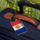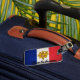Viajando de ou para a França? Esta etiqueta colorida de viagem é perfeita e definitivamente se destaca na multidão. Bandeira em relevo e texto "Vive la France".