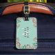 Tag da bagagem em verde pálido com os wildflowers desenhados mão, minúsculos que cercam seus nome e inicial. Adicione seu endereço à parte traseira.