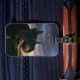 Woof! text can be customized by you. Big, black dog out on landscape at night.