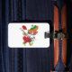 Make your bags instantly recognizable with these funny character luggage tags. Featuring the vibrant illustration of a wacky woman running in a celebratory costume, these tags add unique personality to your suitcases, carry-ons, or gym bags. The bright colors and humorous design help you spot your luggage quickly on the carousel, while the durable material keeps your information secure. Ideal for travelers who appreciate whimsical art and need easy bag identification.