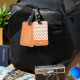 Um Tag alaranjado e branco na moda da bagagem com uma mão feminino tirada coloriu o teste padrão da viga do lápis. Personalize este design alaranjado moderno e à moda do ziguezague adicionando seu nome.
