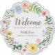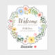 Um belo adesivo de boas-vindas de flores silvestres apresenta flores bonito de cor d'água, feitas em uma paleta de cores pastel. Este design floral é perfeito para criar a papelaria de casamentos de jardim ou rusticidade! Faça-o com facilidade ao conectar suas informações. Um elegante e delicado modelo para tornar a ocasião muito mais especial.