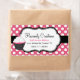 Etiqueta de caixa de padaria doce feita em rosa com bolinhas brancas. Gráficos de uma área de texto decorativa em preto e branco, tem um cupcake bonito decorando o lado esquerdo. Personalize todo o texto para o seu negócio de padaria. Cartões de visitas correspondentes disponíveis.
