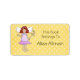 Esta etiqueta de livraria apresenta uma linda princesa de fada em um vestido roxo com asas de fada brancas em um fundo de bolinhas amarela. Perfeito para livros infantis ou para quem gosta de fadas. Também pode ser usado como etiqueta de presente, etiqueta de endereço ou favor da parte.