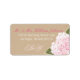Buquê de hydrangea rosa sobre etiquetas de endereço de casamento de aparência de burlap.