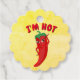 Pimenta picante de estilo cartoon para decoração e rotulagem. Favoritos personalizados em vermelho, laranja, verde e amarelo. Efeito de papel envelhecido aplicado ao fundo. Vazio atrás para mensagens escritas à mão. Ideia para pessoas que amam comida picante.