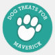 O cão na moda trata adesivos para o seu bebê especial. Especialmente útil se um dos seus animais de estimação tiver necessidades dietéticas especiais. O design mostra uma pintura de cor branca e escura contra um fundo de cor bonito, com texto curvo branco que diz 'Dog Treats For (placeholder name)'. TODO O TEXTO É PERSONALIZÁVEL. Disponível em outras cores.