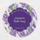 Um rótulo para sabão e produtos de banho com fundo de flores de lavanda. Personalize-o com suas informações comerciais e de produtos.