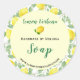 Limões botânicos bonito com padrão verde e centro amarelo pálido para realçar o texto. Ideal para vender/marketing seus produtos de assistência pessoal feitos à mão. Fácil de personalizar com os detalhes da sua empresa. Basta clicar em "Personalizar". Estas etiquetas são de pequeno tamanho e têm 20 autocolantes por folha, tão econômicos também. Pode ser usado para outros produtos simplesmente substituindo a palavra "Sabão".