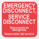 Uma folha de 6, 3 x 3" DESCONECTAR EMERGÊNCIA, etiquetas adesivas DISCONNECT SERVICE com legendas em espanhol. Descontexión de emergencia, descontexión del servicio.