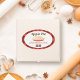 Um adesivo de excelente para etiquetar suas tortas para venda. Texto editável que permite alterar o nome da pizza, dos ingredientes e do preço. O design inclui uma torta de maçã com estilo aquarela genérico, em um fundo xadrez vermelho. O plano de fundo da xadrez vermelha pode ser alterado no Editor para permitir que você personalize o rótulo para diferentes sabores de pizza oferecidos. Excelente para tartes de maçã, tartes de pêssego, tartes de cereja e tartes de mirtilo vendidos em mercados de fazendeiros, estantes de comida, vendas de assar e padarias.