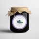 Um adesivo Rótulo rústico com uma comitiva de kraft roxa, um fundo redondo branco e uma ilustração de blueberry para todos os seus doces caseiros, latas, tortas, conservantes, etc.