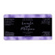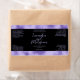 Rótulo para produtos cosméticos e/ou de sabão com fundo preto e uma borda de folha fina roxa. Personalize-o com as informações de seus negócios e produtos.
