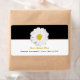 Uma etiqueta de endereço com um fundo de preto com trim amarelo no topo. Ilustração de uma margarida no centro. Personalize com seu nome e endereço em amarelo e preto no fundo. Procure itens correspondentes na Paperie de Jill.