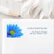 Etiqueta de endereço de casamento com fotografia de margarida azul. Você pode facilmente alterar a cor, o tamanho, a fonte e a posição do texto clicando no botão personalizar.
