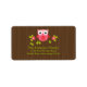 Vestir seus convites para o chá de bebê, anúncios de nascimento de bebê ou bebê, obrigado a anotar cartas com nossas doces etiquetas de endereço de coruja! Esta etiqueta de endereço de retorno apresenta uma coruja rosa adorável sentada em um galho de árvore verde limão com flores colocadas sobre um fundo marrom da tendência. O toque perfeito para seus convites para bebê chuveiros ou convites de aniversário. Os convites correspondentes para chás de fraldas e festa de aniversário estão disponíveis em nosso compro em www.celebrateitinvites.com. © Petit Tatti