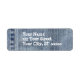 Rótulo de endereço sobre uma foto de jean azul desbotado. Dê às suas cartas um olhar casual ocidental.