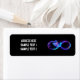 Símbolo luminoso, roxo e infinito com beija-flor azul voadora, luminosa, em fundo preto. Neon.