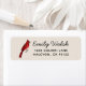 Rótulo de endereço de retorno com um cardeal macho em um fundo bege. Personalize-o adicionando seu nome e endereço. O estilo da fonte, o tamanho da fonte e a cor podem ser alterados clicando em "personalizar mais".