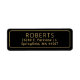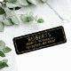 Etiquetas de endereço preto clássico e dourado com fonte sans serif limpa para um toque tradicional.