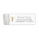O lado esquerdo deste elegante e moderno rótulo de endereço de retorno apresenta uma cinza e uma camada branca de aquarela, aparada com brilho dourado, juntamente com uma cruz de folha falsa de ouro. Personalize o texto com o nome da sua família no script de escrita manual de cinzas de carvão e o seu endereço na fonte de impressão em um fundo branco.